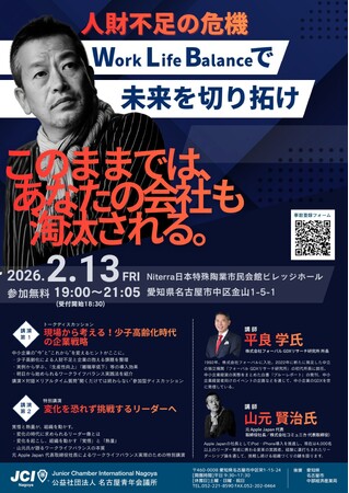 公益社団法人名古屋青年会議所(以下、名古屋青年会議所)は、2026年2月13日、企業経営における人財確保及び、組織運営の課題解決を目的としたフォーラム【人財不足の危機 ~Work Life Balanceで未来を切り拓け~】を開催いたします。