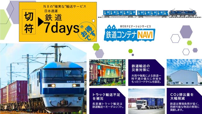 NIPPON EXPRESSホールディングス株式会社(社長:堀切 智)のグループ会社、日本通運株式会社(社長:竹添 進二郎 以下、日本通運)は、物流における大きな課題である自然災害に伴う輸送障害リスクへの対応として、輸送所要日数を通常より長い「集貨日+7日」に固定することで、確実な納品と低コストを実現する新サービス「鉄道7days」を開発しました。