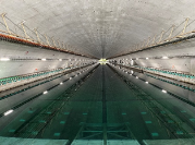 世界最大級の400m水槽の台車に乗って船が作る波の様子を見ることが出来ます。