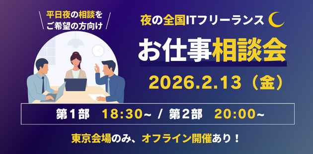 平日夜20時~でも相談できる「夜の全国ITフリーランスお仕事相談会」開催