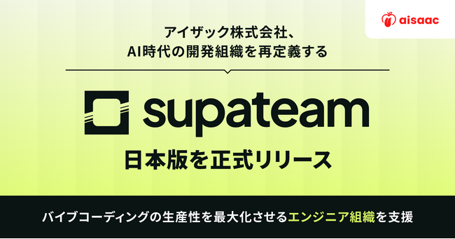 アイザック株式会社(本社: 東京都渋谷区/代表取締役CEO: 田中 和希、以下「アイザック」)は、エンジニアの開発状況を可視化し、生成AIによる開発を前提とした開発生産性の向上を支援するサービス「supateam」(スパチーム)を、日本国内で正式に提供開始いたします。
