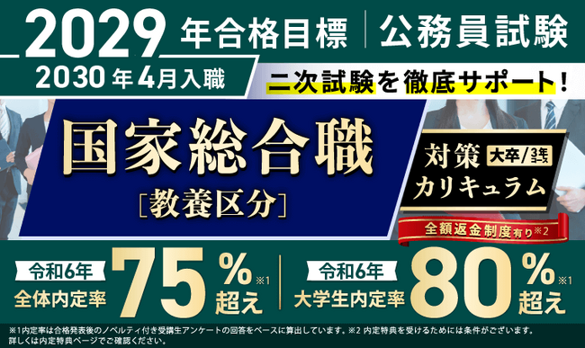 【公務員試験】2029年合格目標 国家総合職[教養区分]対策カリキュラム(大卒/3年コース)リリース!
