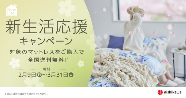 新しい暮らしの始まりに、マットレスを送料無料でお届け!nishikawa『新生活応援キャンペーン』2月9日(月)から3月31日(火)まで開催