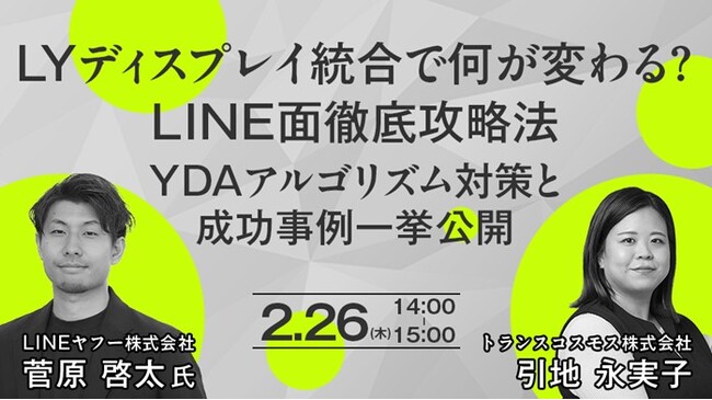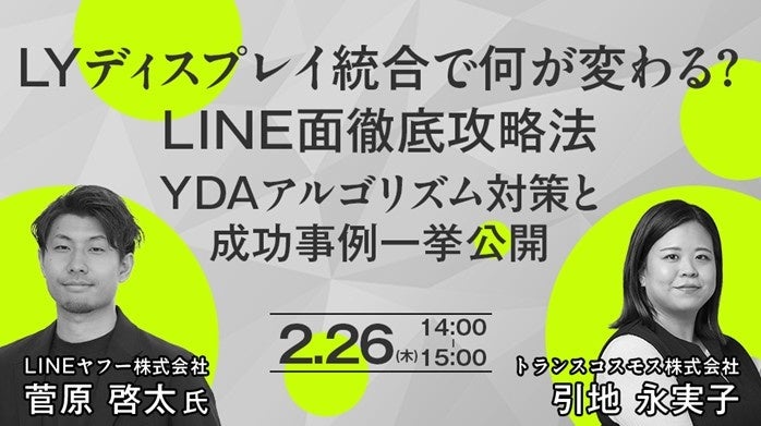 【トランスコスモスオンラインセミナー】LYディスプレイ統合で何が変わる?LINE面徹底攻略法 YDAアルゴリズム対策と成功事例一挙公開を2月26日(木)に開催