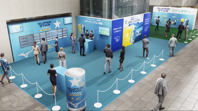 本イベントは、「運動後のご褒美」という商品コンセプトを実際に体験していただくイベントです。スマートフォンの万歩計機能などで歩数を確認し、2250歩以上歩いていれば「SUPER STAR」をプレゼント。歩数が足りない場合は、3分間の「SUPER STARながら運動」(注2)にチャレンジすることで「SUPER STAR」を体験いただけます。
