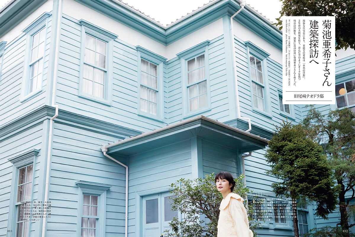東京・豪徳寺にある「旧尾崎テオドラ邸」。1888(明治21)年に、尾崎三良男爵が日本とイギリスの血をひく令嬢テオドラのために建てた水色の洋館です。2020年に取り壊しの危機に直面するも、保存会を立ち上げた漫画家たちの熱意と奮闘で、喫茶とギャラリーとして生まれ変わりました。この水色の洋館を、建築と喫茶をこよなく愛し、モデル・俳優として活躍する菊池亜希子さんに訪ねていただき、その魅力を体感していただきました。