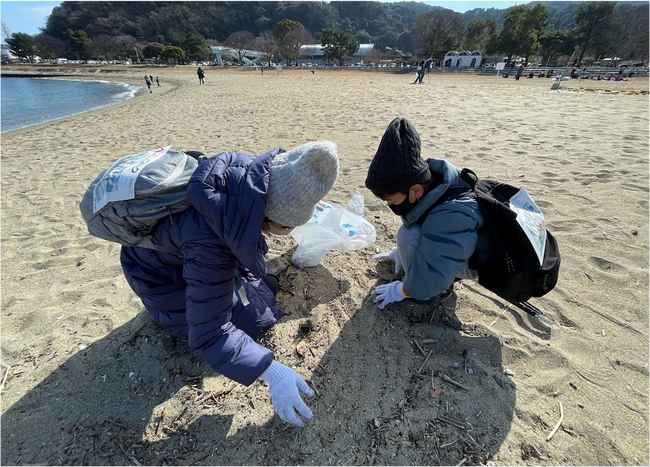 拾った海洋ごみの多くは、ペットボトルのキャップや釣り具の破片、流れ着いた小さなプラスチックごみでした。海に詳しい方に話を伺うと、海洋ごみが漂流し浜辺に流れ着いているとのことでした。一度川や海へ流れ出たプラスチックは、自然の力で砕かれ、二度と元の形には戻りません。紙や流木のように土に還ることはなく、ただ「チップ」として残り続け砂浜と一体化してしまうのが現状です。小さなプラスチックは回収が困難な状態でしたが、こうした微細なごみも地道に拾い集め、イベントを通して海洋ごみ削減に向け環境を見直す大切な学びの機会となりました。[画像2: https://prcdn.freetls.fastly.net/release_image/161057/501/161057-501-fc09f6820109fbbddcddb3f5c686f570-1187x370.png?width=536&quality=85%2C75&format=jpeg&auto=webp&fit=bounds&bg-color=fff ]