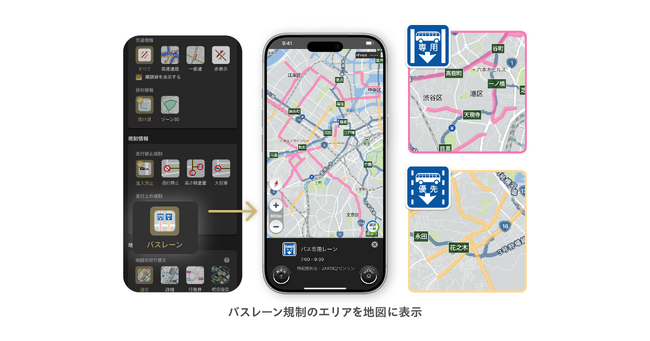 ~専用レーン、優先レーンを色分けして地図上に可視化、交通違反防止をサポート~