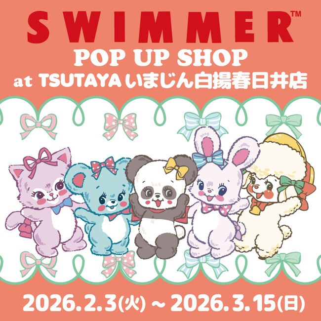 アイピーフォー株式会社(本社:東京都豊島区、代表取締役社長:小濱 剛)がライセンスを取り扱っている大人気雑貨ブランド「SWIMMER」のPOP UP SHOPを、2026年3月15日(日)までTSUTAYA いまじん白揚春日井店で開催中!”かわいいがぎゅっ!”とつまったPOP UP SHOPにぜひお越しください♪