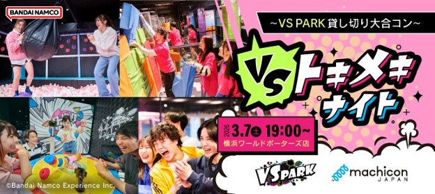 株式会社リンクバル(本社:東京都中央区、代表取締役社長:吉弘和正、証券コード:6046、以下「リンクバル」)が運営するイベントECサイト「machicon JAPAN(マチコンジャパン)」は、株式会社バンダイナムコエクスペリエンスが企画・プロデュースする屋内“ヤバすぎ”アクティビティ施設「VS PARK」との協業により、施設貸し切りの体験型出会いイベント「VSトキメキナイト~VS PARK貸し切り大合コン~」を、2026年3月7日(土)にVS PARK 横浜ワールドポーターズ店にて開催します。
