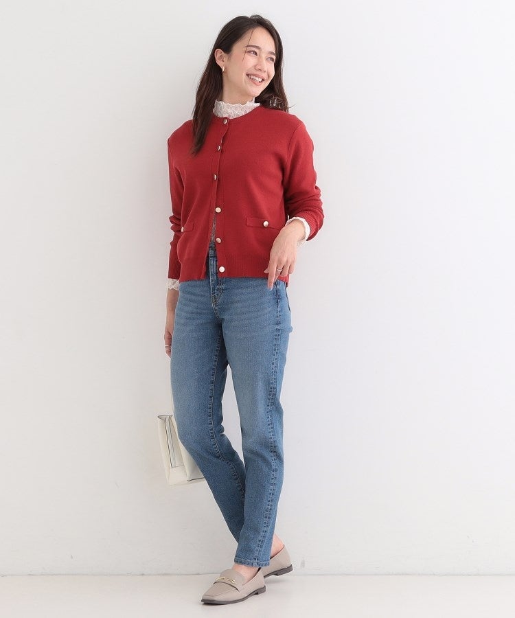 ベーシックなデザインなので、シーズンを問わず長く愛用できるデニムパンツです。チュニック丈のトップスと合わせてもすっきり見えが叶います。