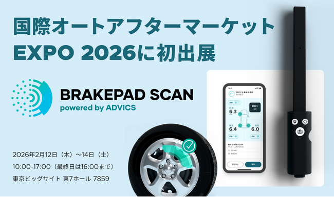 モビリティデータを活用したサービスを提供する株式会社スマートドライブ(本社所在地:東京都千代田区、代表取締役:北川 烈、以下「当社」)は、2026年2月12日(木)~14日(土)に東京ビッグサイトで開催される「第23回 国際オートアフターマーケットEXPO2026」(主催:国際オートアフターマーケットEXPO実行委員会)に初めて出展し、2025年12月に発表したブレーキパッド残量可視化サービス「BRAKEPAD SCAN powered by ADVICS」を展示することをお知らせいたします。