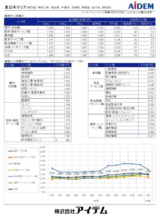 総合人材情報サービスの株式会社アイデム(本社:東京都新宿区 代表取締役社長:椛山 亮)は、求人メディア『イーアイデム』や採用ホームページ構築サービス『Jobギア採促』を利用して公表された求人情報から、2026年1月のパート・アルバイト募集時平均時給を集計いたしました。
