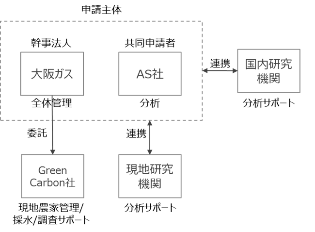 大阪ガス、AS社、Green Carbon社、現地大学、研究機関にて、役割の整理や事業化までのステップを検討します。2027年度末までに両国で20件規模のプロジェクトに、1.技術実証で示した工程を実装することを目指します。