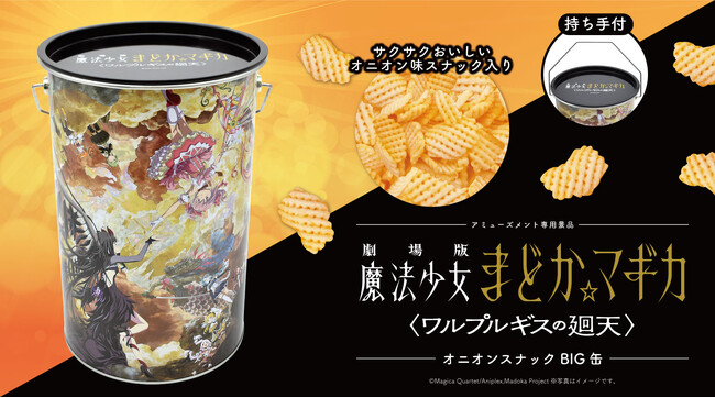 「劇場版 魔法少女まどか☆マギカ 〈ワルプルギスの廻天〉」オニオンスナック入りのBIG缶がアミューズメント施設・オンラインクレーンゲームにて3月に登場!