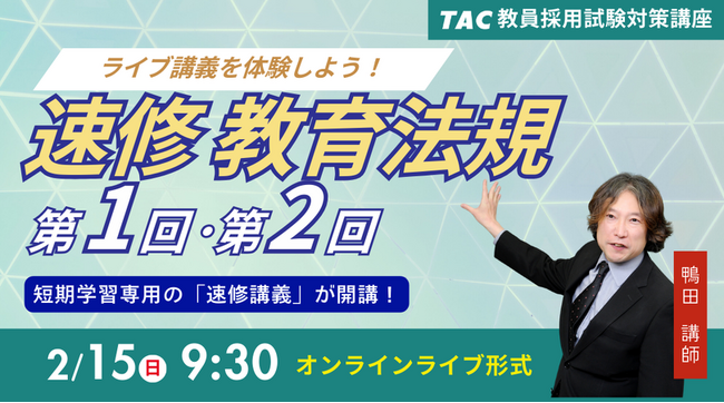 【TAC教員採用試験】「速修 教育法規 第1回・第2回~ライブ講義を体験しよう!~」を2026年2月15日(日)に開催!