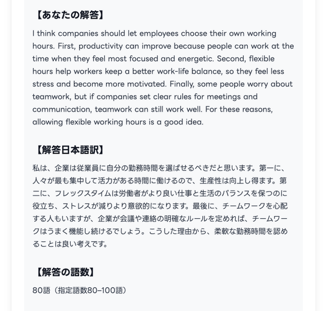 今回のアップデートは、主に次の3点です。- 添削例が、指定語数(レンジ)に収まるよう改善