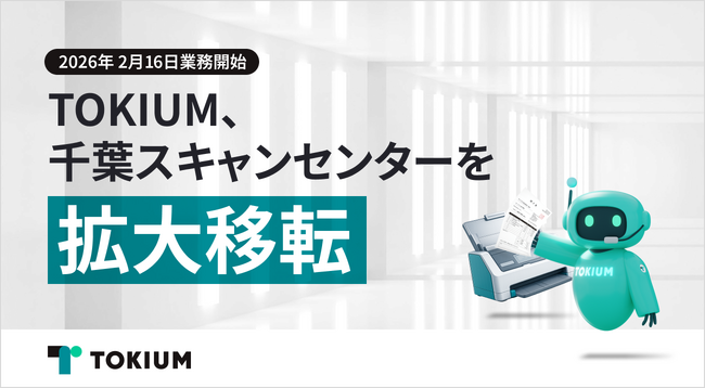 経理AIエージェントを提供する株式会社TOKIUM(本社:東京都中央区、代表取締役:黒崎 賢一、以下「TOKIUM」)は、累計導入社数3,000社*突破に伴う受領件数の急増に対応するため、2026年2月16日に千葉のスキャンセンターを2.7倍規模の新拠点に移転することをお知らせいたします。
