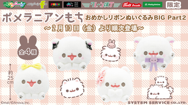 『ポメラニアンもち』限定プライズ第二弾! もちっとかわいい「おめかしリボンぬいぐるみBIG Part2」を2月13日(金)よりモーリーファンタジー・PALOにて展開開始