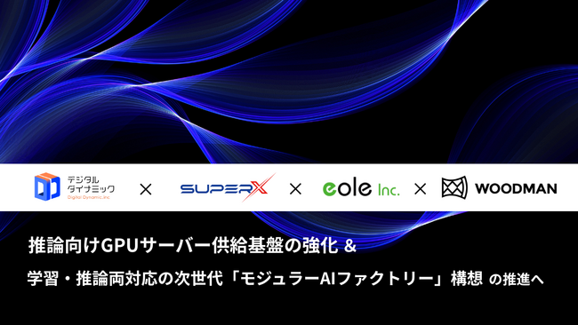 AIデータセンター事業を展開するデジタルダイナミック株式会社(本社:東京都港区、代表取締役:根来実、以下「当社」)は、2026年1月30日付で、SuperX Industries株式会社(本社:大阪市北区、代表取締役:Aiko Furukawa、以下「SuperX社」)、株式会社イオレ(本社:東京都中央区、代表取締役社長兼CEO:瀧野諭吾、以下「イオレ社」)、およびWOODMAN株式会社(本社:東京都千代田区、代表取締役:小野慎二郎、以下「WOODMAN社」)の3社との間で、AIインフラの安定供給および次世代型AIデータセンターの構築検討を目的とした戦略的提携に関する覚書(以下「本覚書」)を締結しました。