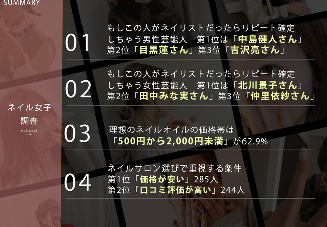 ※アンケート結果を引用する場合は「引用:ネイル女子」と記載し、該当ページのURLをリンクしてください。