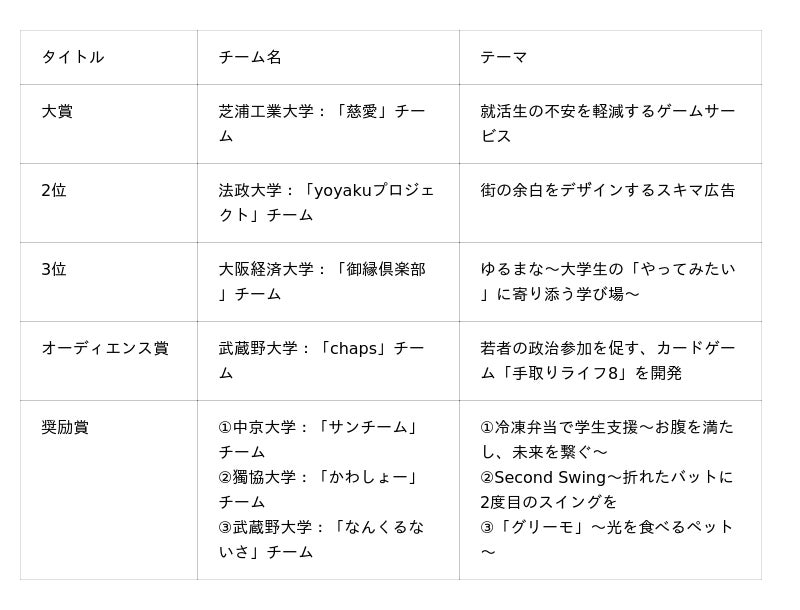 【受賞チームとテーマ】