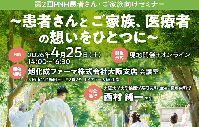 旭化成ファーマは、2026年4月25日(土)に「第2回PNH患者さん・ご家族向けセミナー」を開催いたしますので、お知らせします。