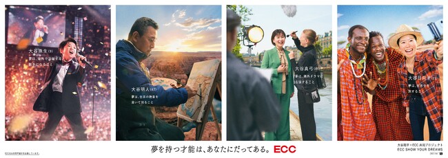大谷翔平選手が夢の実現に向けて海外に挑戦し続けてきた姿にならい、ECCは夢に向かって挑戦するすべての人々を後押ししたいという思いを込め、「夢を持つ才能は、あなたにだってある。」というメッセージを発信します。[画像1: https://prcdn.freetls.fastly.net/release_image/16929/194/16929-194-9faee5f99c3af363e707323f88cbf128-3900x1379.jpg?width=536&quality=85%2C75&format=jpeg&auto=webp&fit=bounds&bg-color=fff ]