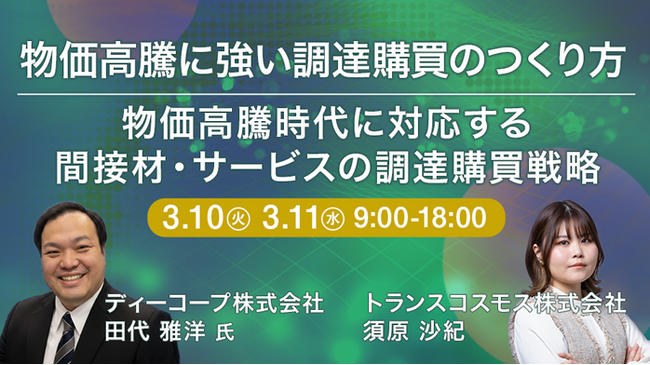 【トランスコスモスオンラインセミナー】物価高騰に強い調達購買のつくり方を3月10日(火)、3月11日(水)に開催
