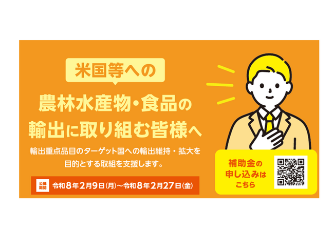 株式会社ぐるなび(本社:東京都千代田区、代表取締役社長:杉原章郎 以下、ぐるなび)は、農林水産省の令和7年度補助事業「重要市場の商流維持・拡大緊急対策」の事務局として、農林水産物・食品の輸出拡大を目指す事業者の公募を2026年2月9日(月)より開始します。
