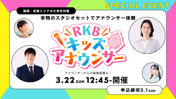 RKB毎日放送株式会社(本社:福岡市早良区)は、福岡県・佐賀県内の小学生を対象としたアナウンサー体験プログラム「RKBキッズアナウンサー」を本年も実施いたします。
