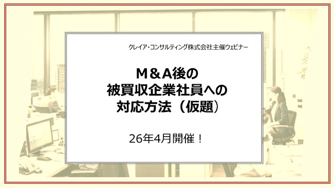 また本調査の分析結果を踏まえて、「M&A後の被買収企業社員への対応方法(仮題)」をテーマとするウェビナーを今年4月に開催致します。