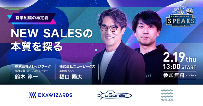 株式会社ニューピークス(NEWPEAKS.inc)は2月19日(木)、オンラインセミナーイベント「SPEAKS 営業リーダーズサミット」を開催します。