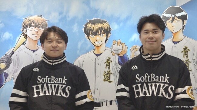 【福岡ソフトバンクホークス】松本晴投手・谷川原選手が「大『ダイヤのA actII』原画展」福岡展に来場!開催は3月14日(土)まで