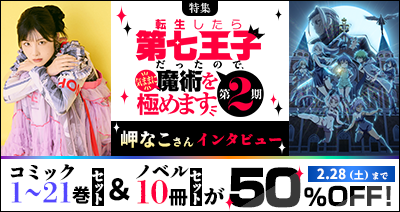 7,200作品以上のアニメが見放題(※)の「dアニメストア」( https://animestore.docomo.ne.jp/ )では、2025年7月からTVアニメ第2期が放送された「転生したら第七王子だったので、気ままに魔術を極めます」の特集記事を公開中です。第2期のエンディング主題歌「Meteor」を担当し、声優としてラミィ役でも出演された岬なこさんが、「第七王子」の魅力を語るインタビューを掲載!また、2月28日(土)までの期間限定で、「第七王子」のコミック・ノベルが50%OFFで購入できるキャンペーンも開催中です。