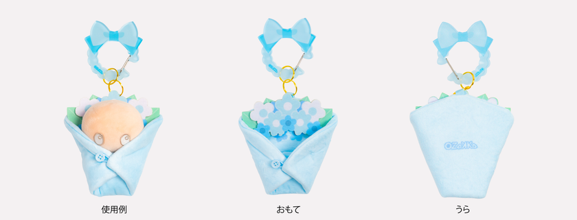 「ぬいのおくるみ ぬいくるみん」は、OZaKKaが2025年3月に発売した、ぬいぐるみを持ち歩くための「おくるみ」型キーホルダーチャームです。