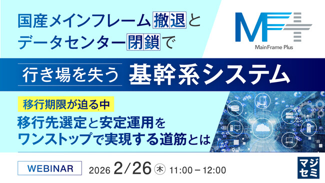 マジセミ株式会社は「国産メインフレーム撤退とデータセンター閉鎖で行き場を失う基幹系システム」というテーマのウェビナーを開催します。
