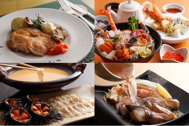 「うにしゃぶ×すきやき」で、県産魚介のほか県産和牛も