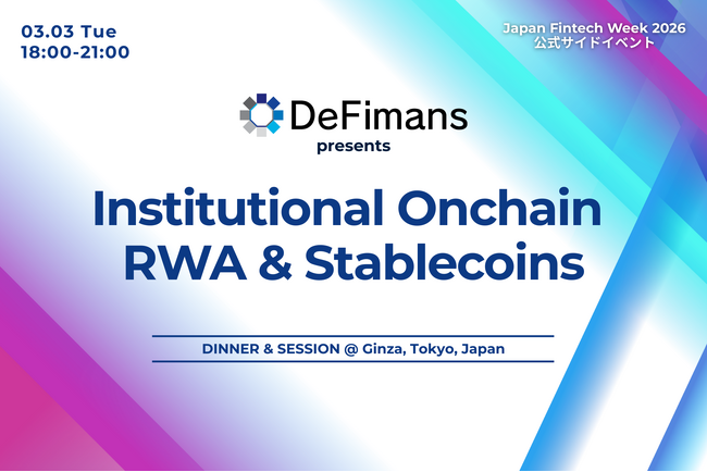 株式会社DeFimans(所在地:東京都港区、代表取締役:小野 暢思・佐藤 太思、以下「DeFimans」)は「Institutional Onchain - RWA & Stablecoins」を2026年3月3日(火)に開催いたします。