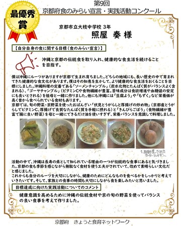 ~「第9回京都府食のみらい宣言・実践活動コンクール」入賞作品~