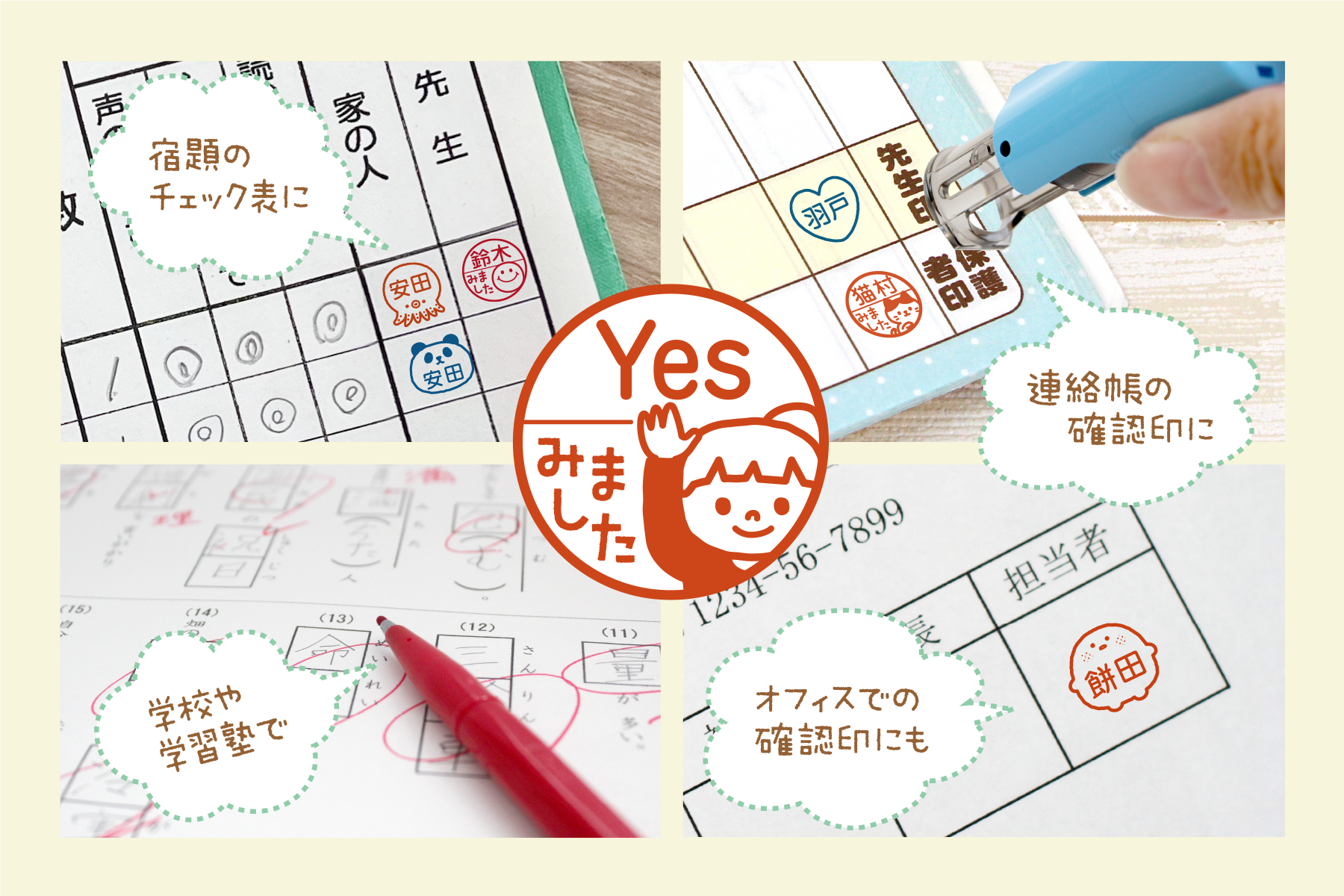お子さまの連絡帳や音読カードの確認はもちろん、学校や学習塾、オフィスでのチェック印としても使いやすく、かわいさと実用性を兼ね備えたデザイン印鑑です。