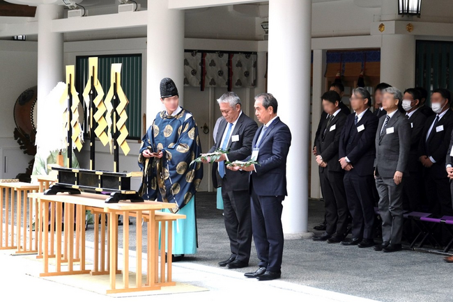 日本管財安全衛生協力会では、毎年全国6支部において安全祈願祭を執り行っています。この行事は、ビルメンテナンス業務における事故を未然に防ぎ、働く方々の健康と地域の安全、そして各企業の発展を祈願することを目的としています。