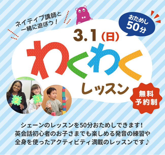 【シェーン英会話】3月1日開催!新年少~新小学6年生対象「無料おためしレッスン」申込受付中
