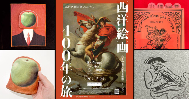 フェリシモが展開する「ミュージアム部」は、京都市京セラ美術館で開催予定の「西洋絵画400年の旅-珠玉の東京富士美術館コレクション」(2026年3月20日~5月24日)とコラボ企画したグッズを、展覧会特設ショップ限定で販売します。英雄・ナポレオンを描いた《サン=ベルナール峠を越えるボナパルト》のクリアファイルブックとノートブック、ルネ・マグリット《観念》のタオルハンカチという、暮らしの中で楽しめる3アイテムです。