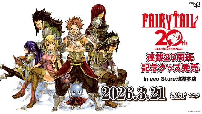 真島ヒロ先生による王道ファンタジー漫画「FAIRY TAIL」の連載20周年を記念した新作グッズの発売が決定! 2026年2月6日(金)よりeeo Store onlineにて通販がスタートし、3月21日(土)からはeeo Store 池袋本店にて店舗販売も始まります。