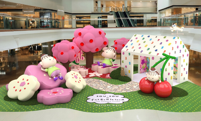 京都発テキスタイルブランド「SOU・SOU」(代表取締役:若林剛之)は、香港の国民的シンガーソングライター王菀之(イヴァナ・ウォン)が手がける人気キャラクター「fatBottle(肥波兔)」とのコラボイベント《SOU・SOU × fatBottleland - THE GARDEN STORY》を、2026年2月5日~3月1日の期間、香港の大型ショッピングモール「フェスティバル・ウォーク(又一城)」にて開催しております。日本のテキスタイルデザインと香港のポップカルチャーが融合した、両都市の文化交流を象徴する空間を創出。会場には巨大なfatBottleのオブジェやSOU・SOUのデザインが随所に配され、春節を祝う華やかな雰囲気を演出します。期間限定ショップでは、日本から直送された商品や限定コラボグッズなどを販売します。