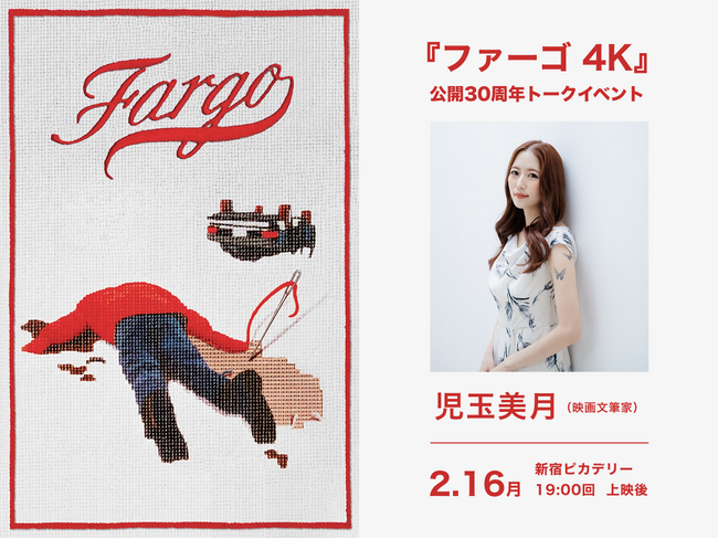 2月16日(月)新宿ピカデリーにて、映画文筆家の児玉美月さんをお迎えして、『ファーゴ 4K』公開30周年記念トークイベント付き上映の開催が決定しました!