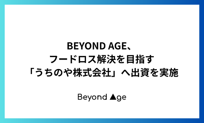 BEYOND AGE、フードロス解決を目指す「うちのや株式会社」へ出資を実施