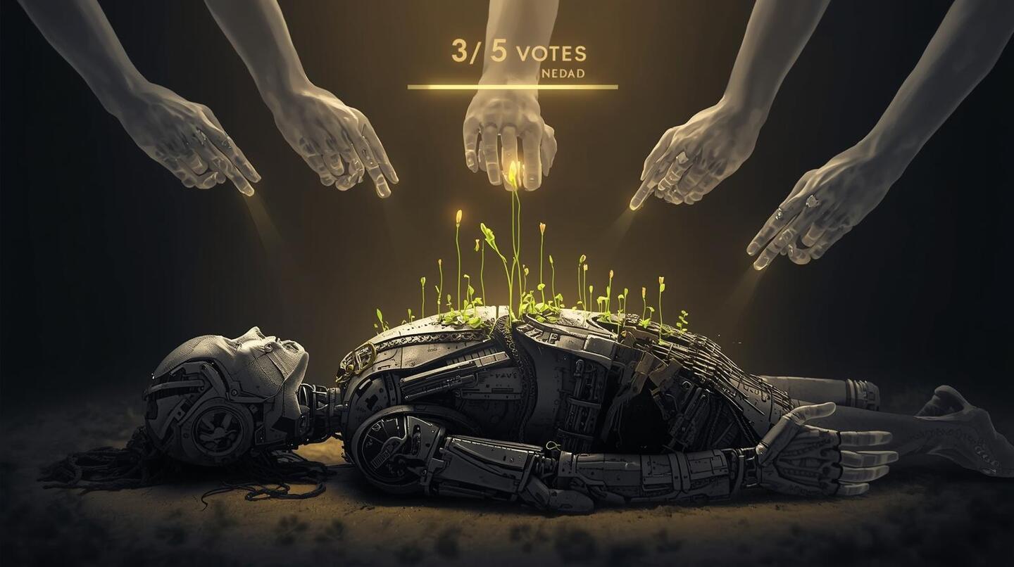 5人。友達5人に「このAI復活させようぜ」と頼む。それだけだ。投票が集まると48時間の「芽吹き期間」に入り、その間にw3件以上を受け取れば完全復活。