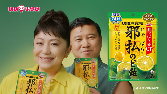 「邪払のど飴????」は、和歌山県北山村産「じゃばら」果汁を使用。昨年12月にリニューアルし、さらにじゃばら感がUPした「すっきり爽快」なのど飴????です。CMでは石川さゆりさんに大きな声で近づいてくるスギちゃんを、「邪払のど飴????」ですっきりさせるという内容で、商品の清涼感を表現しています。「スギちゃん、すっきり!」するストーリーと、CM初共演の石川さんとスギちゃんの見事な掛け合いをお楽しみください。